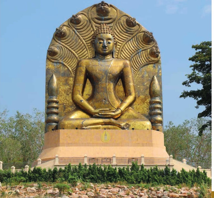 พระพุทธรูปองค์นี้สร้างตามแบบพระพุทธรูปนาคปรก ประทับขัดสมาธิราบ ศิลปะทวารวดี ก่ออิฐถือปูน สูง ๓๔ เมตร สองข้างประดับด้วยพระสถูปจำลอง มีพญานาคลักษณะหัวคล้ายงูใหญ่ ๗ เศียร แผ่พังพานอยู่ด้านหลังองค์พระประดับโมเสดสีทอง ติดตั้งอยู่บนพื้นที่ของวนอุทยานแห่งชาติเขาอีโต้ สูงเด่นเป็นสง่า