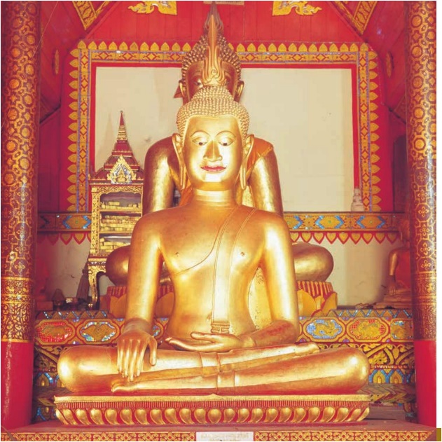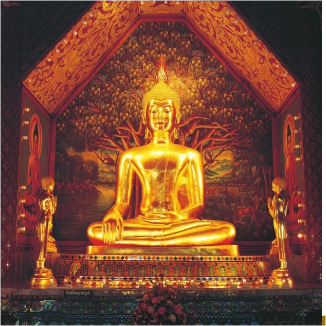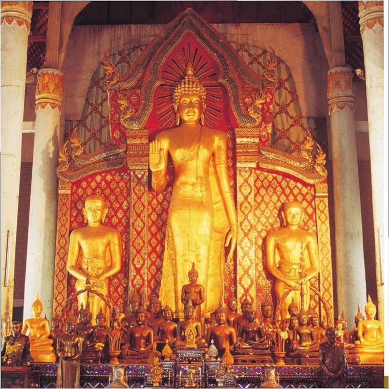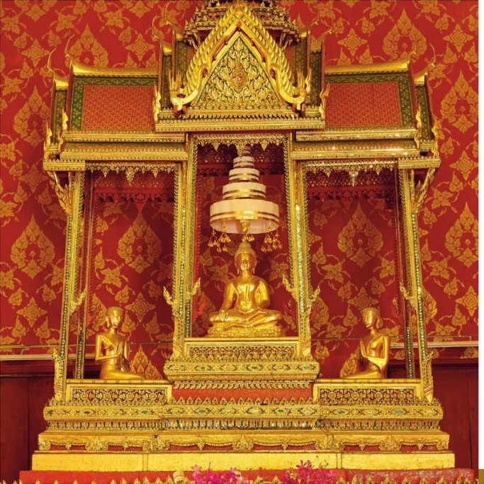 ภาพพระพุทธชินสีห์ (ด้านหน้า) พระพุทธสุวรรณเขต (ด้านหลัง) วัดบวรนิเวศวิหาร กรุงเทพมหานคร