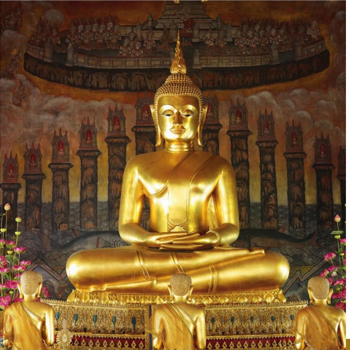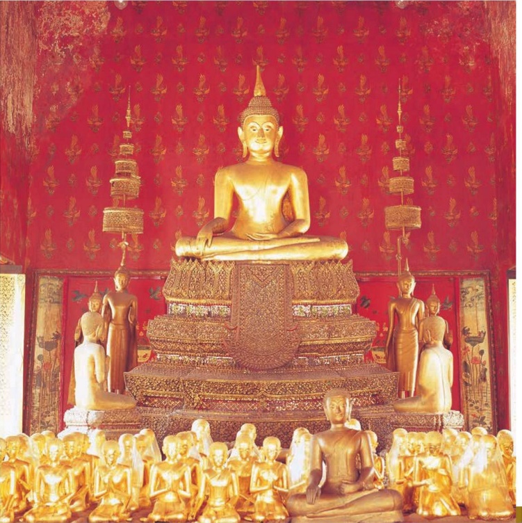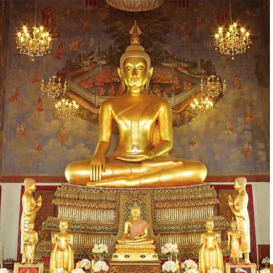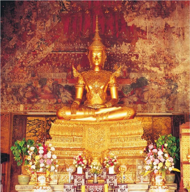 ภาพพระพุทธชินสีห์ (ด้านหน้า) พระพุทธสุวรรณเขต (ด้านหลัง) วัดบวรนิเวศวิหาร กรุงเทพมหานคร
