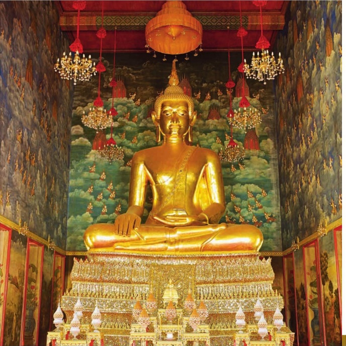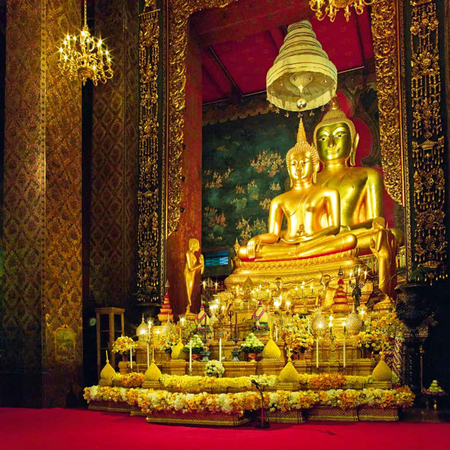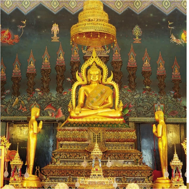 ภาพพระพุทธชินสีห์ (ด้านหน้า) พระพุทธสุวรรณเขต (ด้านหลัง) วัดบวรนิเวศวิหาร กรุงเทพมหานคร
