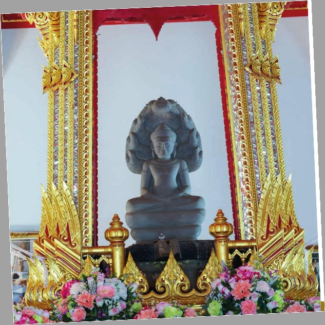หลวงพ่อศิลา เป็นพระพุทธรูปนาคปรก ปางสมาธิ แกะสลักจากหินทราย สีเทา ศิลปะลพบุรีตามแบบศิลปะเขมรแบบบายน สร้างขึ้นในราวพุทธศตวรรษที่ ๑๘ - ๑๙ พระพักตร์ทรงสี่เหลี่ยม ไม่แย้มพระโอษฐ์เหมือนศิลปะเขมรแบบบายน ประทับขัดสมาธิราบ บนฐานขนดนาคสามขั้น นาคที่ปรกอยู่เหนือพระเศียรมี เจ็ดเศียร ด้านหลังหางนาคพาดขึ้นมาถึงลำตัว ลักษณะที่แสดงถึงศิลปะลพบุรี หรือศิลปะเขมรในประเทศไทยคือ ที่กระบังหน้ามีแนวขั้นตรงกลาง ผ้าทิพย์ รองรับองค์พระมีลายดอกจันที่ขุดลึกลงไปในเนื้อหิน ต่างจากส่วนใหญ่ที่ทำเป็นลายขีดธรรมดา ทรงกรองศอพาหุรัด สวมศิราภรณ์ สวมมงกุฎเทริด ขนาดองค์พระ วัดจากฐานถึงปลายยอดเศียรนาคสูง ๘๕.๕๐ เซนติเมตร หน้าตักกว้าง ๔๔ เซนติเมตร น้ำหนัก ๑๒๖.๕ กิโลกรัม