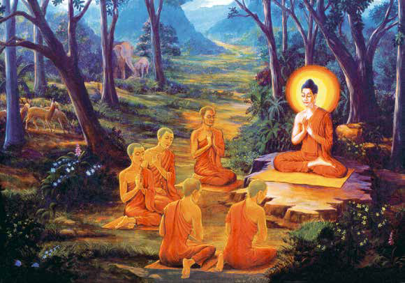 ภาพพระพุทธเจ้าทรงแสดงปฐมธรรมเทศนา “พระธัมมจักกัปปวัตตนสูตร” โปรดปัญจวัคคีย์ ทั้ง 5