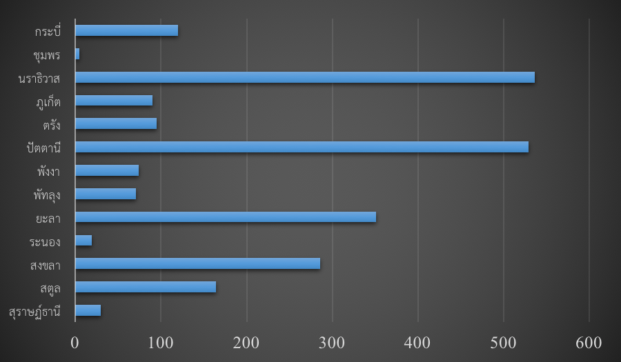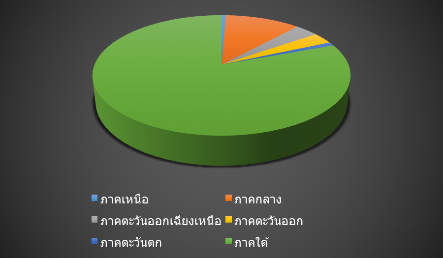 แผนภูมิจำนวนมัสยิดทั้งหมดในประเทศไทย จำแนกตามรายภูมิภาค