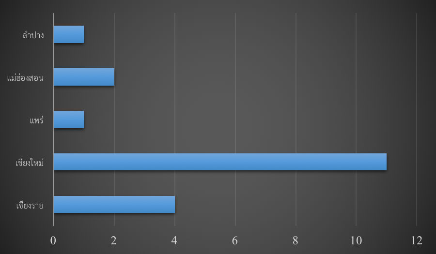 แผนภูมิจำนวนมัสยิดทั้งหมดในภาคเหนือ จำแนกตามรายจังหวัด