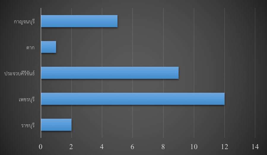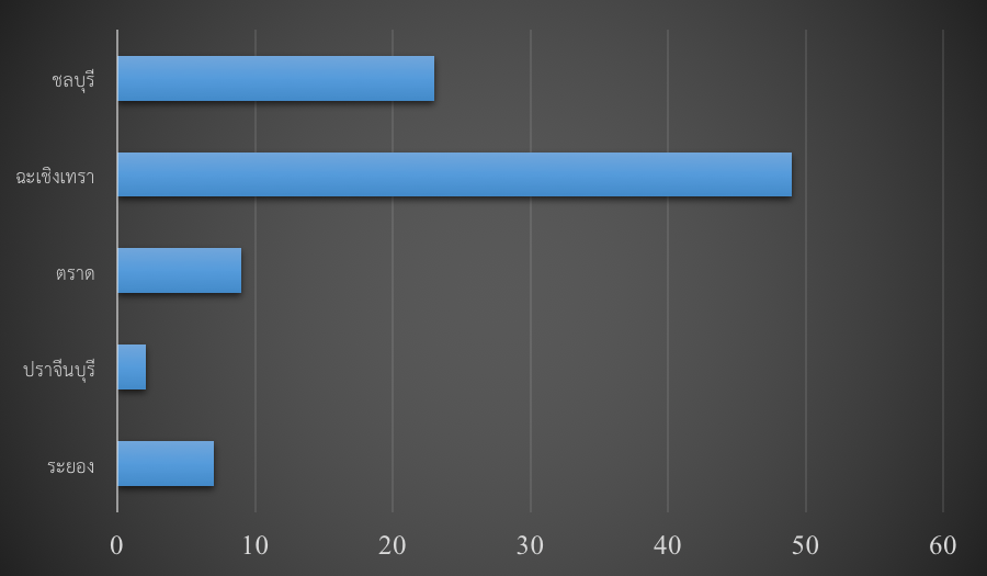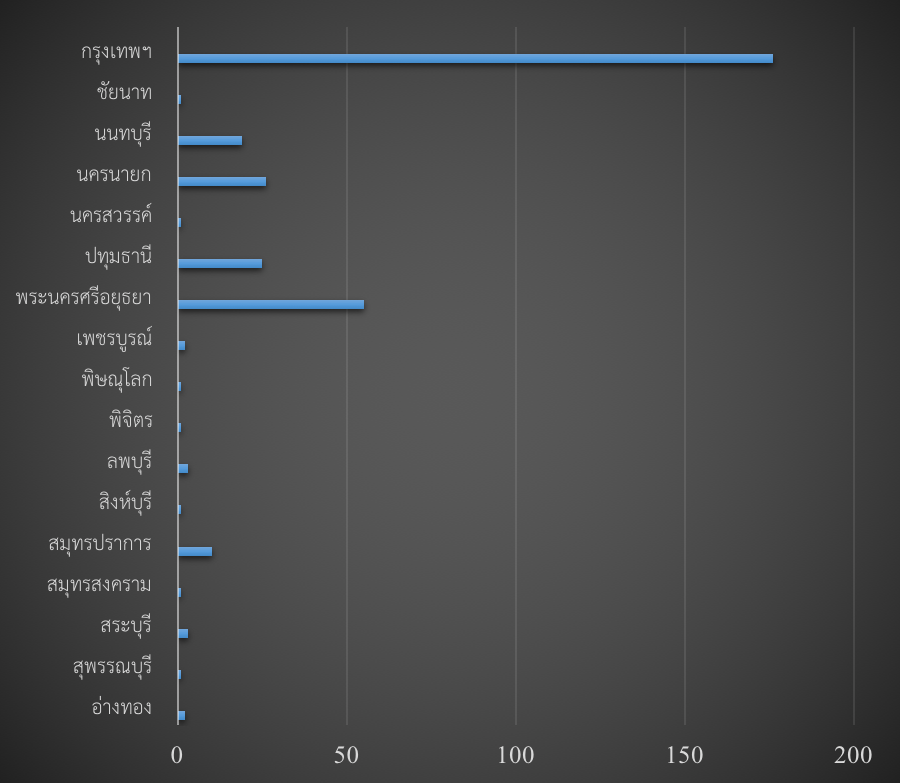 แผนภูมิจำนวนมัสยิดทั้งหมดในภาคกลาง จำแนกตามรายจังหวัด